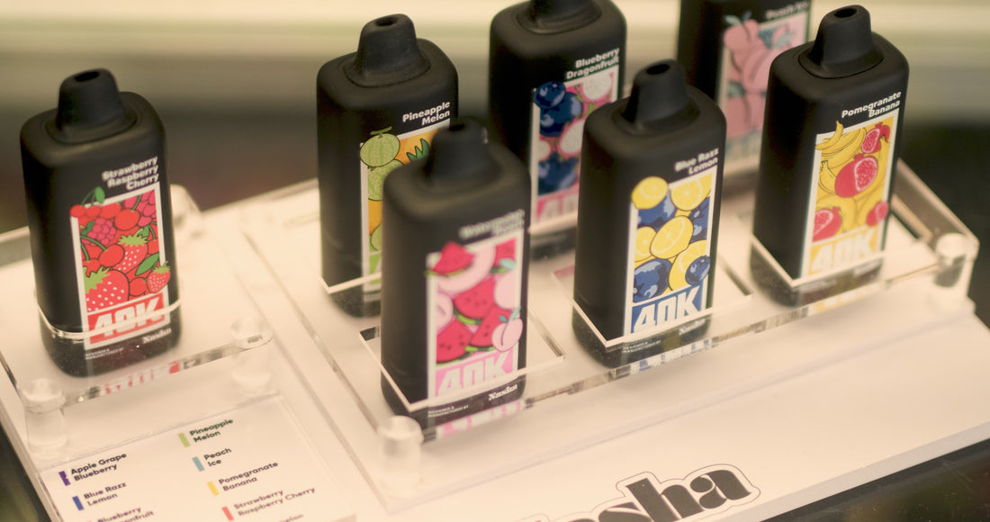 Now in 20mg salt nicotine, with up to 40,000 puffs, bold flavors, dual mesh coil, OLED display, 3 power modes, and a 1000mAh battery — all packed with a child lock for safety.